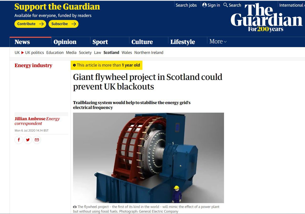 14. August, 2020: "Giant flywheel project in Scotland could prevent UK blackouts"