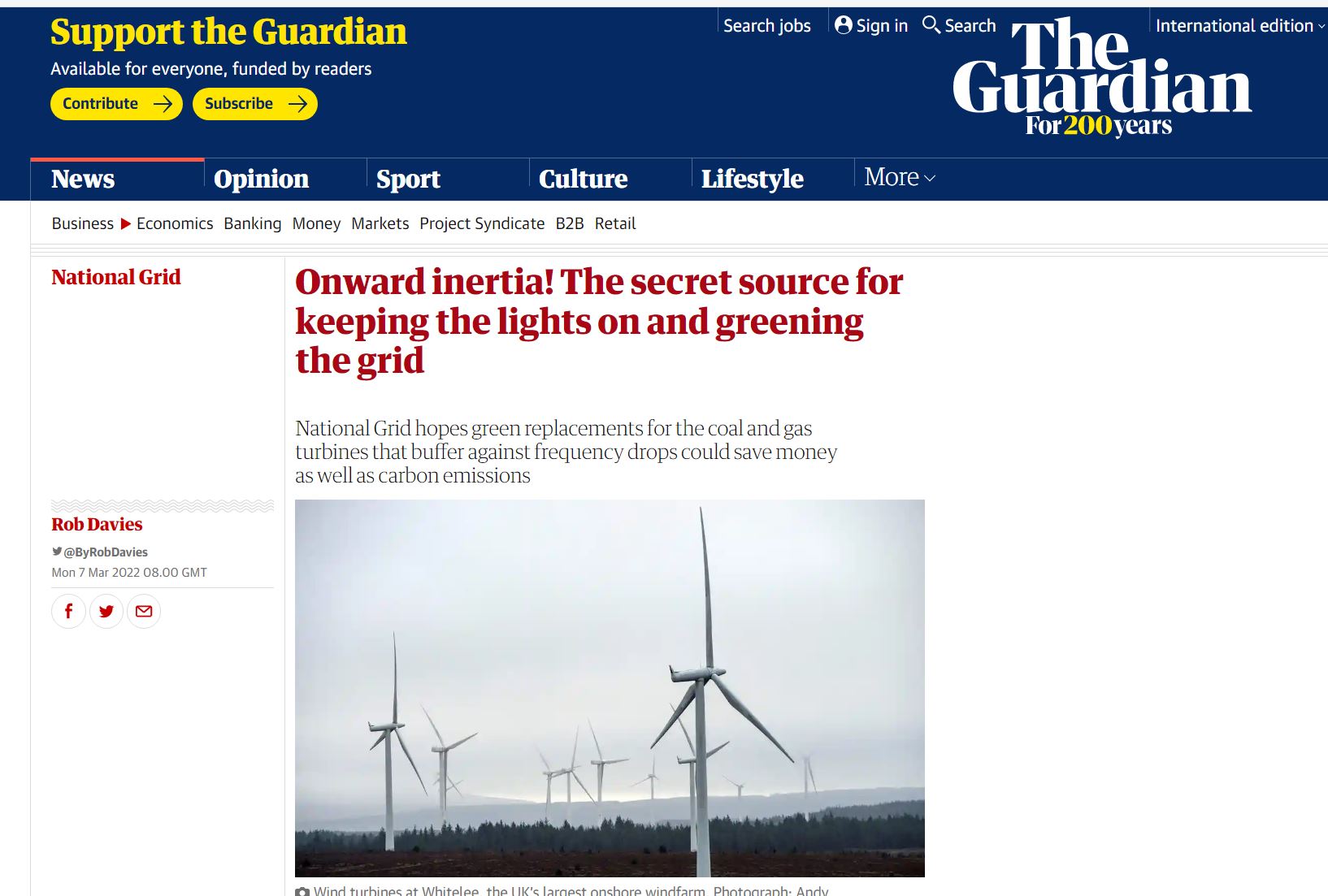 7 Mar 2022: "Onward inertia! The secret source for keeping the lights on and greening the grid"